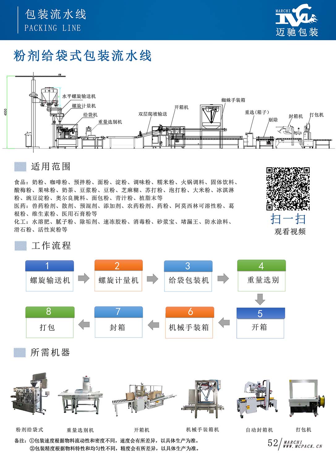 剛收到邁馳售后技術人員在客戶現場發來的沖飲全自動包裝流水線圖片,因為最近咨詢的人也比較多,在這里跟大家講解一下,這條智能化固體飲料沖飲包裝機 流水線需要哪些設備:需要上料、包裝、重量檢測、金屬檢測、自動開箱、裝箱、封箱、二維碼采集、機器人碼垛。包裝形式可以根據不同客戶需求進行選型可 分為立式制袋包裝機、預制袋包裝機、灌裝機等多種包裝風格。